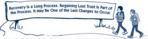When substance abuse stops, the trust does not return right away. To trust means to feel certain you can rely on someone. People cannot be certain just because they want to be. Trust can be lost in an instant, but it can be rebuilt only over time. Trust will return gradually as the person who violated the trust gives another person reasons to trust again. One or both people may want the trust to return sooner, but it takes time for feelings to change.